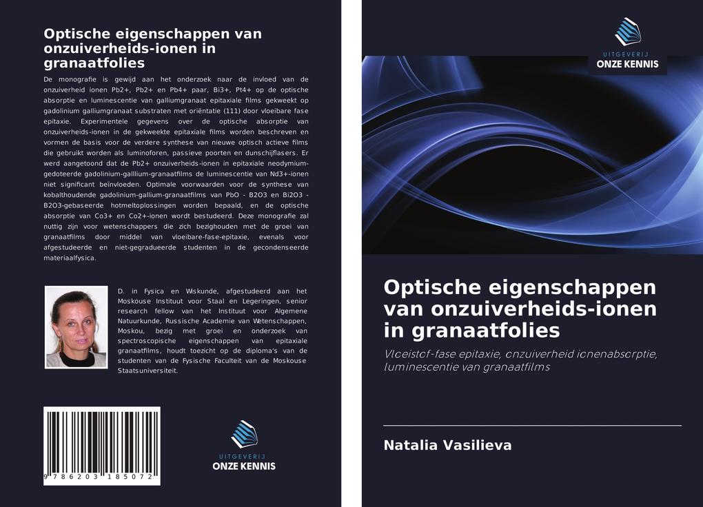 De monografie is gewijd aan het onderzoek naar de invloed van de onzuiverheid ionen Pb2+, Pb2+ en Pb4+ paar, Bi3+, Pt4+ op de optische absorptie en luminescentie van galliumgranaat epitaxiale films gekweekt op gadolinium galliumgranaat substraten met oriëntatie (111) door vloeibare fase epitaxie. Experimentele gegevens over de optische absorptie van onzuiverheids-ionen in de gekweekte epitaxiale films worden beschreven en vormen de basis voor de verdere synthese van nieuwe optisch actieve films die gebruikt worden als luminoforen, passieve poorten en dunschijflasers. Er werd aangetoond dat de Pb2+ onzuiverheids-ionen in epitaxiale neodymium-gedoteerde gadolinium-galllium-granaatfilms de luminescentie van Nd3+-ionen niet significant beïnvloeden. Optimale voorwaarden voor de synthese van kobalthoudende gadolinium-gallium-granaatfilms van PbO - B2O3 en Bi2O3 - B2O3-gebaseerde hotmeltoplossingen worden bepaald, en de optische absorptie van Co3+ en Co2+-ionen wordt bestudeerd. Deze monografie zal nuttig zijn voor wetenschappers die zich bezighouden met de groei van granaatfilms door middel van vloeibare-fase-epitaxie, evenals voor afgestudeerde en niet-gegradueerde studenten in de gecondenseerde materiaalfysica.