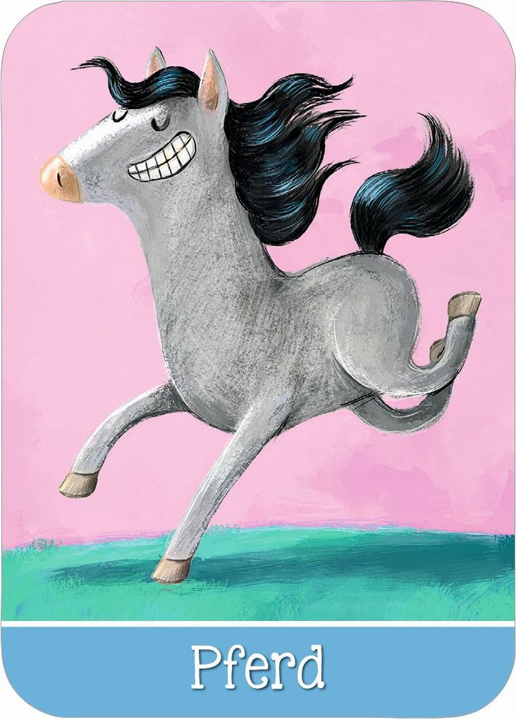 Wie bewegt sich ein Pferd? Welche Bewegung macht man beim Klettern? Und wie stelle ich eine Ärztin dar? Ohne Worte: In Pantomime für Kinder müssen die Begriffe auf den Karten pantomimisch erklärt werden. Wer stellt die Begriffe am besten dar? Und wer errät die meisten Wörter und gewinnt? Von Berufen über Tiere bis hin zu Freizeitaktivitäten findet sich hier eine kunterbunte Mischung an Begriffen. Die schön illustrierten Karten helfen dabei, sich die richtigen Bewegungen für das jeweilige Wort zu überlegen. Das Spiel ist dank der kindgerechten Begriffe und einer Variante für kleinere Kinder schon im Vorschulalter spielbar und sowohl für kleine als auch für große Gruppen geeignet. Ob für Kindergeburtstage, Spielenachmittage mit der Familie oder für die Klassenfahrt: Spiel-Spaß für Jung und Alt ist hier garantiert! So wird's gespielt:Zwei Teams treten abwechselnd gegeneinander an. Eine*r aus dem Team erklärt den Teammitgliedern einen Begriff - ohne ein Wort zu sagen. Die anderen müssen ihn erraten. Das andere Team stoppt die Zeit und schaut, ob richtig geraten wurde. Das Team, das die meisten Begriffe errät, gewinnt. + Pantomime-Kartenspiel+ Inhalt: 40 Karten, 1 Spielanleitung