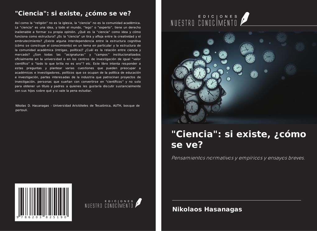 Así como la "religión" no es la iglesia, la "ciencia" no es la comunidad académica. La "ciencia" es una idea, y todo el mundo, "lego" o "experto", tiene un derecho inalienable a formar su propia opinión. ¿Qué es la "ciencia" como idea y cómo funciona como estructura? ¿Es la "ciencia" un tira y afloja entre la creatividad y el embrutecimiento? ¿Existe alguna interdependencia entre la estructura cognitiva (cómo se construye el conocimiento) en un tema en particular y la estructura de la comunidad académica (intrigas, política)? ¿Cuál es la relación entre ciencia y mercado? ¿Son todas las "asignaturas" y "campos" institucionalizados oficialmente en la universidad o en los centros de investigación de igual "valor científico" o "todo lo que brilla no es oro"? etc. Este libro intenta responder a estas preguntas y plantear varias cuestiones que pueden preocupar a académicos e investigadores, políticos que se ocupan de la política de educación e investigación, partes interesadas de la industria que patrocinan proyectos de investigación, personas que sueñan con convertirse en "científicos" y no solo para obtener un título y padres a quienes les gustaría discutir sustancialmente con sus hijos sobre qué y si vale la pena estudiar.