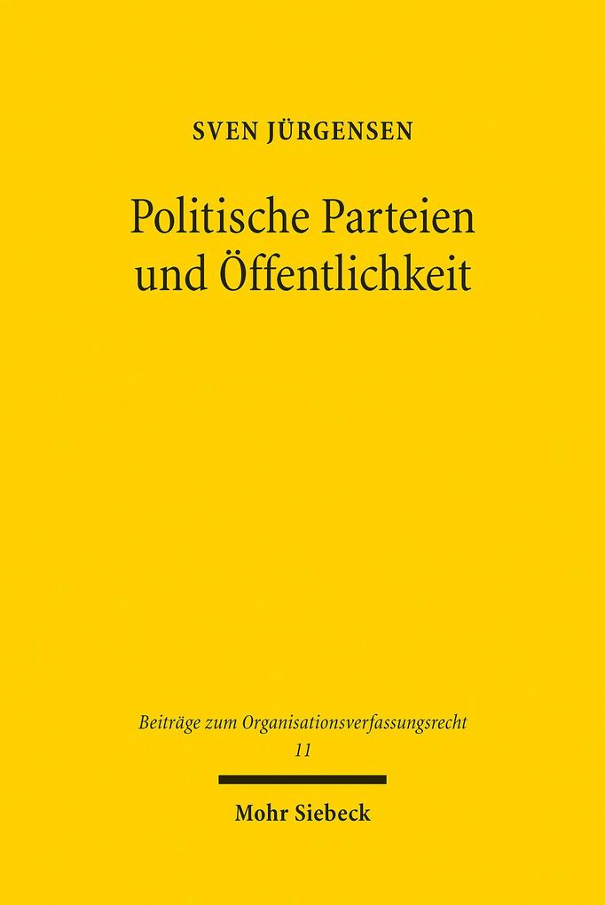 Politische Parteien und Öffentlichkeit sind zwei schillernde Begriffe der politischen und der Verfassungstheorie und bilden Grundkategorien der Verfassungsstaatlichkeit. Sven Jürgensen untersucht ihre jeweilige Bedeutung und ihr Verhältnis in ideengeschichtlicher, verfassungstheoretischer und -rechtlicher Sicht und hinterfragt den spezifischen Gewährleistungsstil der Verfassung in diesem Bereich. Vor diesem Hintergrund erarbeitet er eine normative Begründung des parteienrechtlichen Status demokratischer Öffentlichkeit, der die Funktionsfähigkeit der Parteien als Mittel der demokratischen Beeinflussbarkeit rechtlich absichert und seine Grundlage im Gebot innerparteilicher Demokratie findet. Aus ihm folgen Publizitätspflichten für Parteitage, die Schiedsgerichtsbarkeit und die Aufstellung von Kandidaten in jeweils bestimmten Umfang.