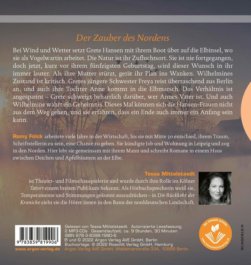 Grete ist ebenfalls Single, sie ist ihr Leben lang im kleinen Dorf an der Elbe geblieben, eine frühe Schwangerschaft machte ihre Träume von der weiten Welt zunichte. Sie kümmerte sich erst um ihre Tochter Anne, dann brauchte Wilhelmine mehr und mehr Unterstützung mit Haus und Hof. Gretes Zufluchtsort ist die Natur, der Garten, vor allem aber das Naturschutzgebiet an der Elbe, wo sie als Vogelwartin arbeitet. Als sich jetzt, kurz vor ihrem fünfzigsten Geburtstag, eine unerwartete Chance zum Ausbrechen bietet, auf die sie schon lange gehofft hat, braucht sie einmal die Unterstützung ihrer Familie mehr denn je.