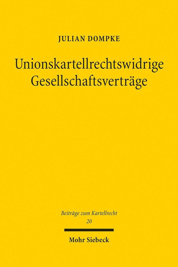 Kartellverbotswidrige Vereinbarungen - auch Gesellschaftsverträge - sind nichtig. Für das deutsche Recht scheint insoweit klar, dass die kartellrechtliche Nichtigkeit bei Kapitalgesellschaften teilweise durch gesellschaftsrechtliche Vorgaben überlagert wird. Für das Personengesellschaftsrecht wird demgegenüber leidenschaftlich um den richtigen Umgang mit der kartellrechtlichen Nichtigkeitsfolge gestritten. Ein Konsens ist hier nicht in Sicht. Weitgehend unbeachtet blieb demgegenüber lange die parallele Fragestellung im Unionsrecht, die häufig allenfalls als Annex der nationalen Diskussion wahrgenommen wurde. Julian Dompke stellt diese unionsrechtliche Betrachtung in den Vordergrund seiner Überlegungen und zeigt, dass hieraus nicht bloß eine Akzentverschiebung der für das nationale Recht geführten Diskussionen im Kapital- und im Personengesellschaftsrecht resultiert.