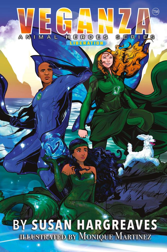 Veganza, Courage and Freedom are animal heroes rescuing all species of animals in danger in this novel. One of Veganza's superpowers creates more heroes by empowering people with empathy. Courage, the vegan mermaid, defends all sea creatures. Freedom marshals the sky and all flying beings to help save animals in dire need. Together, this trifecta of formidable plant-powered super heroes face their biggest challenges yet in this exciting saga. Are the risks too great and the odds insurmountable? Can a daring daylight liberation save a transport truck full of animals facing certain death?