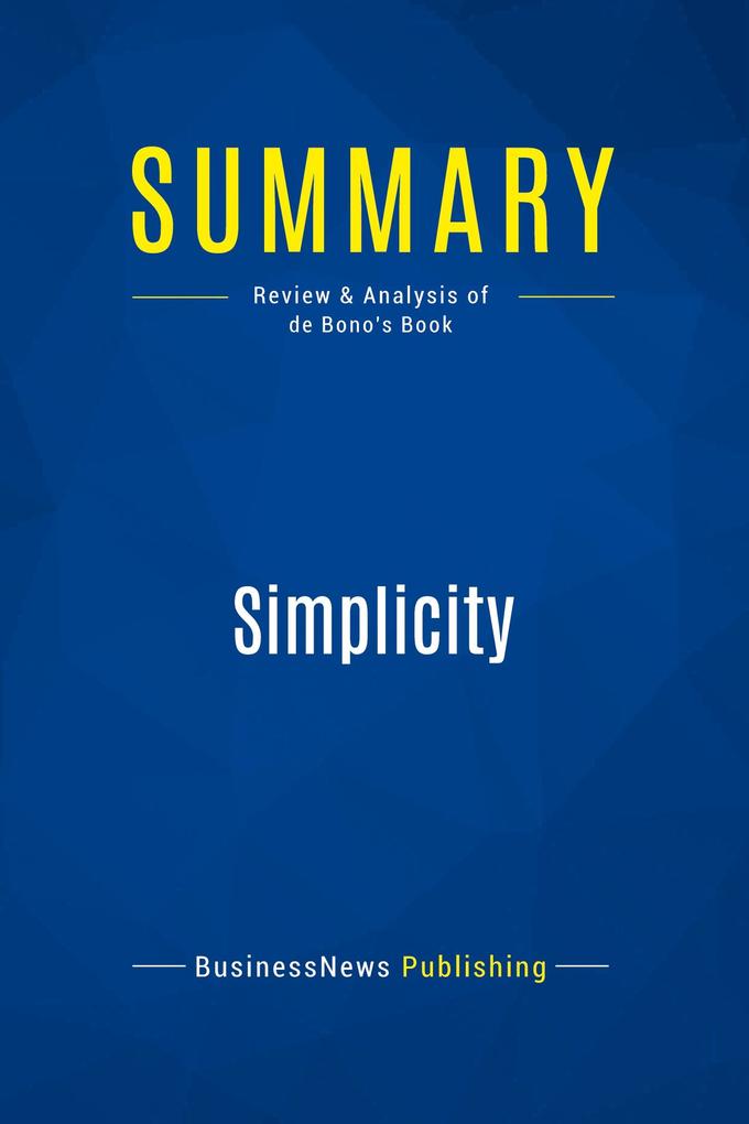 This complete summary of the ideas from Edward de Bono's book "Simplicity" shows how most consumer products are too complex for customers, who become frustrated by long instruction booklets; the same can be said for other processes and products. In his book, the author explains the value of simplicity: it saves time and money, allows freedom and is a powerful selling tool. The successful businesses of the future will market simplicity, not complexity, which is easier for customers to understand, and is more elegant. This summary explains how to simplify company structures, products, and process, and provides 14 different methods that are suitable for different situations.
