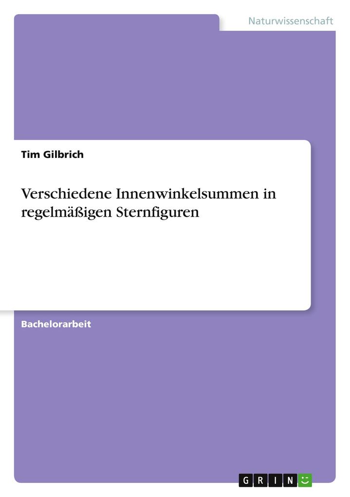 Bachelorarbeit aus dem Jahr 2021 im Fachbereich Mathematik - Geometrie, Note: 1,7, Technische Universität Carolo-Wilhelmina zu Braunschweig (Didaktik der Mathematik und Elementarmathematik), Sprache: Deutsch, Abstract: Die allgemeine Innenwinkelsumme regelmäßiger Sternfiguren stellt in der Mathematik die Summe der Innenwinkel in ihren Spitzen dar, die bereits untersucht und bewiesen wurde. Ich möchte in dieser Arbeit jedoch den Begriff der Innenwinkelsumme erweitern und somit alle möglichen Winkel in regelmäßigen Sternfiguren in Betracht ziehen. Daher möchte ich mich der Frage widmen, welche Winkelsummen in regelmäßigen Sternfiguren für weitere mögliche Innenwinkelsummen in Betracht gezogen werden können.