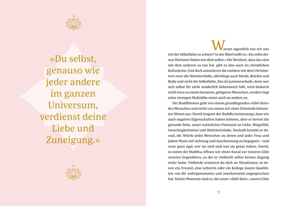 Die Weisheit des Buddha steht für zeitlose, tiefe Inspiration, die unser Leben verwandeln kann. Anhand von 40 Zitaten erklärt die Bestsellerautorin Ilona Daiker die wichtigsten Aspekte der buddhistischen Lehre. Jeder Spruch wird hinterfragt auf seine praktische Bedeutung für unseren Alltag. Zentrale Aspekte sind dabei die Macht der Gedanken, die Ursachen für Leid sowie die großen Säulen des Glücks wie Freude, Dankbarkeit und Großzügigkeit. Außerdem geht es um die heilsame Wirkung von Achtsamkeit und einen mitfühlenden Umgang mit uns selbst und anderen. Lebendige Beispiele und einprägsame, oft humorvolle Weisheitsgeschichten sorgen für Spaß beim Schmökern. Ein wunderschön gestaltetes Buch, das Herz und Seele berührt!