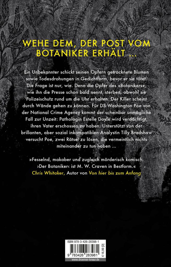 »Fesselnd, makaber und zugleich mörderisch komisch. 'Der Botaniker' ist M. W. Craven in Bestform. « Chris Whitaker