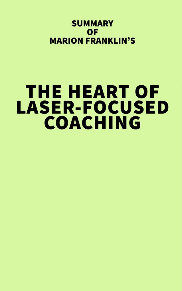 Get the Summary of Marion Franklin's The HeART of Laser-Focused Coaching in 20 minutes. Please note: This is a summary & not the original book. Original book introduction: Marion Franklin, the Coach's Coach, has been training and mentoring coaches for more than 20 years. Every student she has mentored or taught who sought ACC, PCC, or MCC has gotten their credential using the material in this book designed for all levels of coaches. No matter where you are in your coaching journey, this book has something for you.
