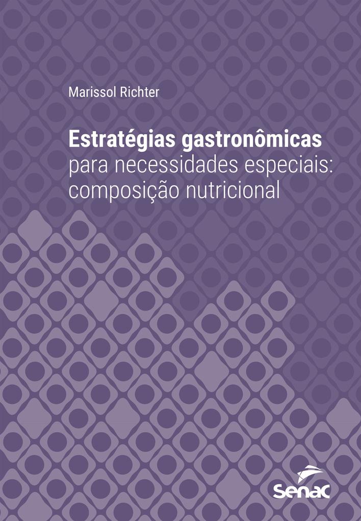 Estratégias gastronômicas para necessidades especiais: composição nutricional apresenta as diversas modificações de composição nutricional na produção de dietas específicas, além de detalhar alternativas para a substituição de açúcar, óleos e gorduras em produções gastronômicas diet e light, promovendo o conhecimento de conceitos de gastronomia na confeitaria, o uso de gelificantes e espessantes e as práticas clássicas de produções de massas, recheios e coberturas. Também detalha estratégias gastronômicas para o atendimento de alterações na oferta de calorias e proteínas, além do desenvolvimento de preparações com a utilização de alimentos para fins específicos. As estratégias para o desenvolvimento de receitas envolvem, além da composição nutricional, os estudos dos ingredientes e seus substitutos, a busca de referências sensoriais nas receitas tradicionais e a exploração das técnicas dietéticas e gastronômicas. O livro trata ainda da importância do registro e da padronização das receitas através da elaboração da ficha técnica culinária detalhada. O objetivo é oferecer estratégias gastronômicas para o desenvolvimento de receitas com modificações na composição nutricional, oferecendo uma refeição equilibrada e prazerosa.