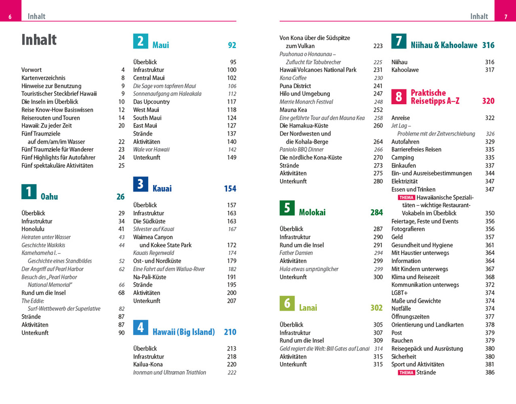 In dem aktuellen Reiseführer erhalten Reisende viele Tipps, um den richtigen Ort, den richtigen Zeitpunkt und die passende Unterkunft auf Hawaii zu finden. Ausführliche Informationen zu Geschichte, Kultur und Vulkanismus werden ergänzt durch Tipps zu Ausflügen, Wanderungen und Wassersport sowie durch praktische Karten und eine kleine Sprachhilfe Hawaiianisch.