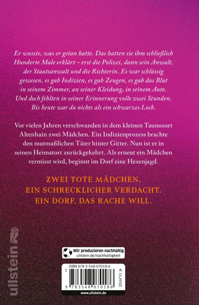 Vor vielen Jahren verschwanden in dem kleinen Taunusort Altenhain zwei Mädchen. Ein Indizienprozess brachte den mutmaßlichen Täter hinter Gitter. Nun ist er in seinen Heimatort zurückgekehrt. Als erneut ein Mädchen vermisst wird, beginnt im Dorf eine Hexenjagd.