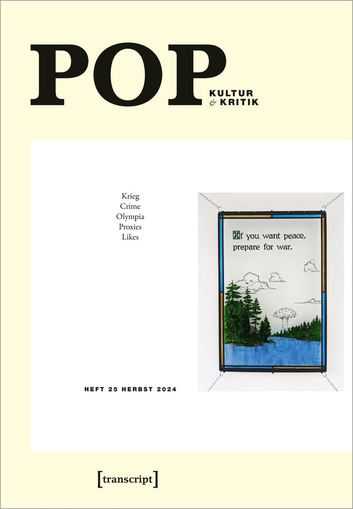 »Pop. Kultur und Kritik« analysiert und kommentiert die wichtigsten Tendenzen der aktuellen Popkultur in den Bereichen von Musik und Mode, Politik und Ökonomie, Internet und Fernsehen, Literatur und Kunst. Die Zeitschrift richtet sich sowohl an Wissenschaftler*innen und Student*innen als auch an Journalist*innen und alle Leser*innen mit Interesse an der Pop- und Gegenwartskultur. Heft 25 widmet sich den Themen Musical, TV, Serien, Hongkong und Krieg.