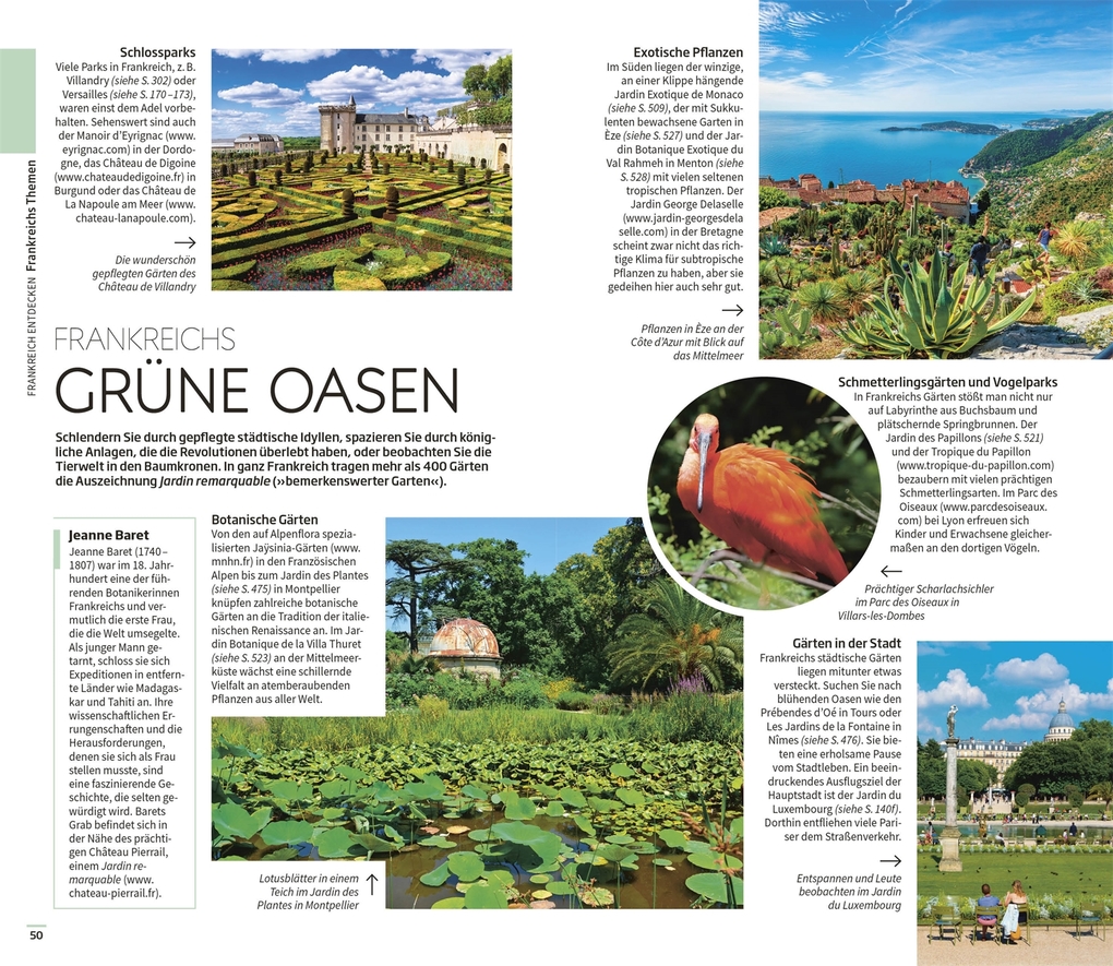 - Ausgewählte Top-Themen: Auf den bildgewaltigen Themenseiten des Frankreich-Reiseführers stehen charakteristische Besonderheiten im Fokus. Lernen Sie die beliebteste Musikform des Landes, den Chanson, oder die beeindruckende Geschichte Frankreichs kennen. Auch Kunstfans kommen nicht zu kurz: Sehen Sie mit eigenen Augen