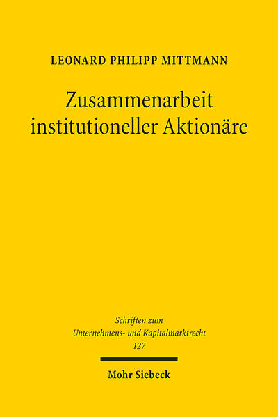 Die Europäische Corporate Governance Agenda verfolgt unter anderem das Ziel, ein aktiveres Engagement institutioneller Aktionäre in ihren Beteiligungsunternehmen zu fördern. Unter Heranziehung eines methodenpluralistischen Ansatzes setzt sich Leonard Philipp Mittmann mit der Frage auseinander, inwieweit die Indienststellung institutioneller Aktionäre als Corporate Governance-Akteure ökonomisch sinnvoll und (kapitalmarkt-)rechtlich de lege lata möglich ist. Dabei erörtert er, ob kollektive Handlungen institutioneller Aktionäre bezogen auf gemeinsame Beteiligungsunternehmen das Aktionärsengagement tatsächlich fördern können. Sein Hauptaugenmerk legt der Autor auf eine Analyse des europäischen und deutschen Regulierungsrahmens bezüglich abgestimmter Verhaltensweisen von Aktionären (acting in concert).