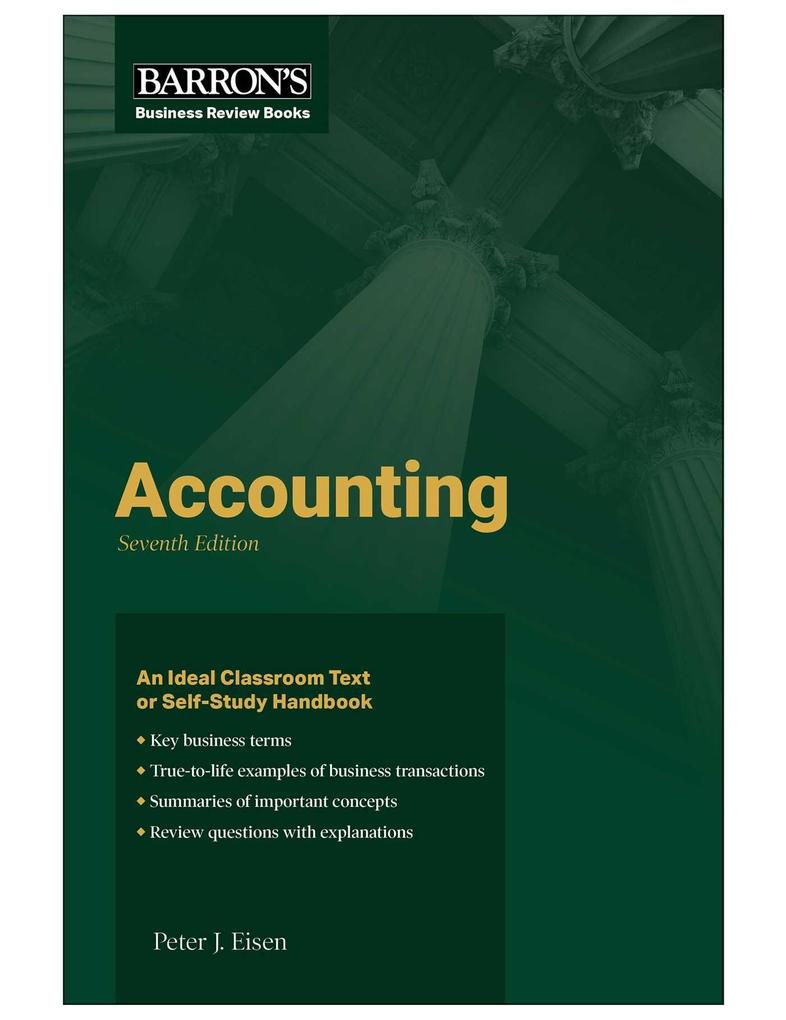 Like the other titles in Barron’s Business Review Series, this Seventh edition of Accounting makes a useful supplement to college textbooks, and is also excellent as a main text in business brush-up programs. Author Peter J. Eisen familiarizes students with key accounting terms, explains the accounting equation, and goes on to instruct in the use and preparation of financial statements, the recording of business transactions in journals, and in closing and adjusting entries at the end of a business period. The book is organized to closely follow a standard college textbook, but concentrates on student understanding of what is done, and, more importantly, how and why. Other helpful features include: