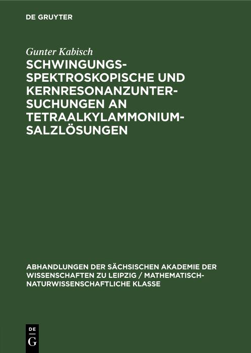 Dieser Titel, "Schwingungsspektroskopische und Kernresonanzuntersuchungen an Tetraalkylammoniumsalzlösungen", ist eine wissenschaftliche Publikation, erschienen bei De Gruyter Brill. Ausführliche Beschreibung, Inhaltsverzeichnis und weitere Angaben finden Sie auf der Verlagswebsite: https://www. degruyterbrill. com/isbn/9783112565322