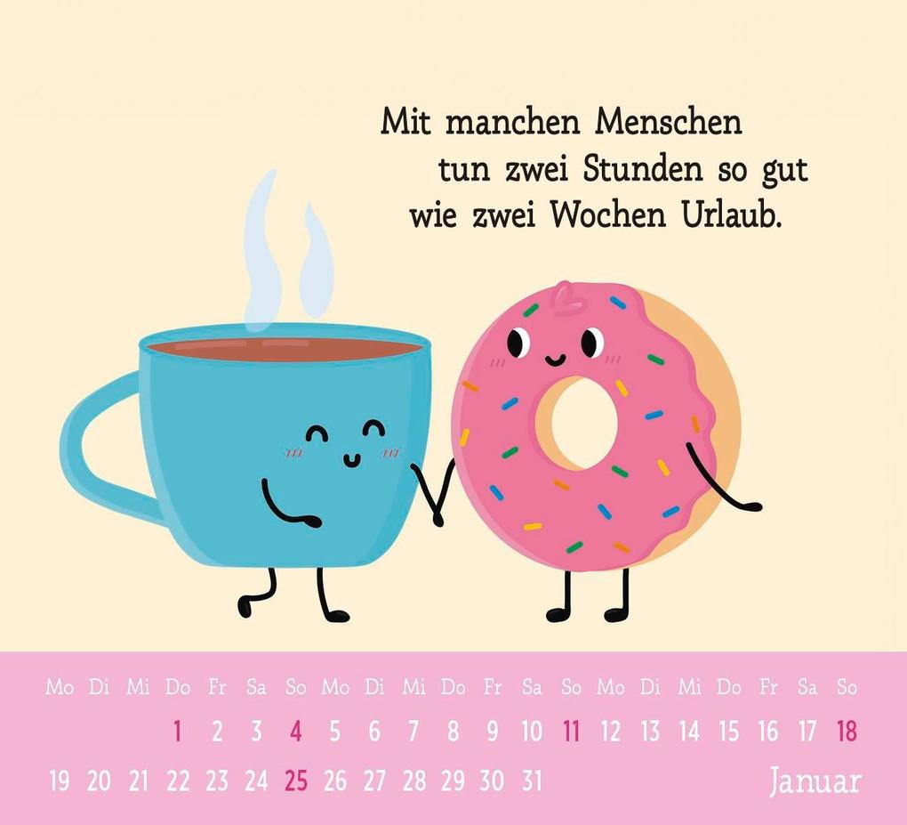 Der Mini-Kalender Der kleine Freundschaftskalender 2026 findet überall ein Plätzchen und ist ein schönes kleines Geschenk oder Mitbringsel für Ihre beste Freundin oder Ihren besten Freund. Farbenfrohe Fotos und liebevolle Zitate und Sprüche feiern Ihre Freundschaft und machen den Tischkalender mit Monatskalendarium zum fröhlichen Blickfang für das Jahr 2026, ob zu Hause im Regal oder auf dem Schreibtisch im Büro. Auf den Rückseiten bieten die Blätter des Aufstellkalenders Platz zum Eintragen von Notizen und Geburtstagen.