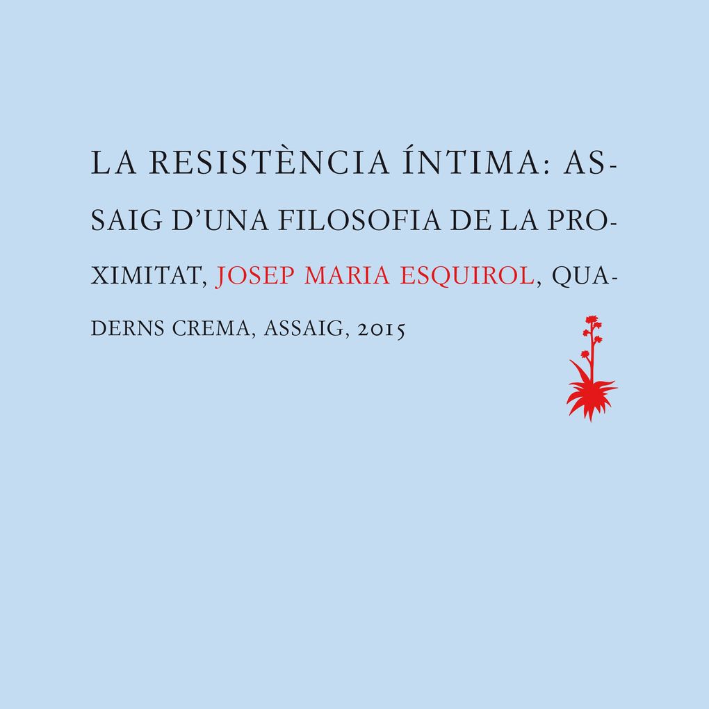 "La resistència íntima" és una reflexió atenta i profunda sobre la condició humana. L'autor ens mostra com la vertadera cura d'un mateix ofereix escalfor als que són a la vora, protegint-los i fent-los de guia en el camí. "Hem de considerar "resistència íntima" com el nom d'una "experiència", pròpia de la comarca de la "proximitat"; comarca que no és visita d'un dia, sinó estança habitual. Avui, romandre en aquesta comarca no és planer. La proximitat no es mesura en metres, ni en centímetres. El seu oposat no és la llunyania, ans més aviat la monocromia ubiqua del món tecnificat. Hem vist com la quotidianitat i el gest de la casa són modalitats importantíssimes de l'experiència de la proximitat".