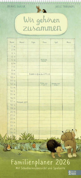 Der beliebte Familienplaner mit Hase und Igel ist wieder da! Mit unserem liebevoll gestalteten Kalender behalten Familien ganz einfach den Überblick über alle wichtigen Termine, Geburtstage und Veranstaltungen. Denn mit den liebenswerten Figuren von Michael Engler und Joëlle Tourlonias macht die Alltagsplanung einfach Spaß. In den fünf großzügigen Spalten hat jedes Familienmitglied seinen eigenen Platz. So sehen alle auf einen Blick, wer wann was geplant hat - sei es Mama, Papa, die Kinder oder sogar die Haustiere. Und am Ende gibt es auch eine Übersicht über die Schulferien und die ersten drei Monate des Jahres 2027.