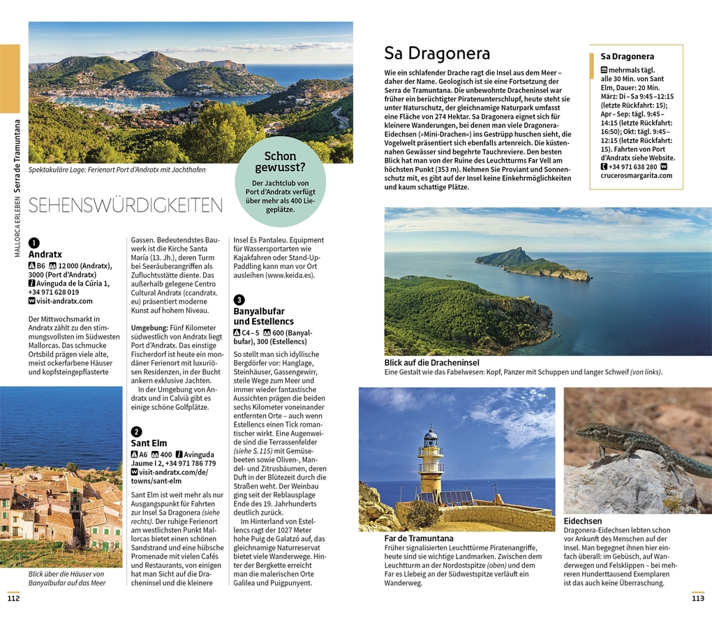 Durch die verwinkelten Gassen Palmas spazieren, das idyllische Bergdorf Valldemossa besuchen oder am Cap Formentor fantastische Ausblicke auf das tiefblaue Meer genießen: Lassen Sie sich vom Vis-à-Vis Reiseführer Mallorca zu den wichtigsten Sehenswürdigkeiten und schönsten Orten der Insel führen. Mit fundiertem Expertenwissen, inspirierenden Fotos und detaillierten Karten stellt Ihnen der übersichtliche Reiseführer die Regionen und Ortschaften Mallorcas mit allen Attraktionen vor - von der traumhaften Serra de Tramuntana über das pulsierende Herz der Insel Palma bis zu den herrlichen Stränden, paradiesischen Buchten und verträumten Fischerdörfern im Süden. Ob für 1 Tag in Palma oder eine 1-Wochen-Rundreise auf Mallorca - hier finden Sie passende Reiserouten und Empfehlungen für Aktivitäten, Restaurants und Hotels, um das Beste aus Ihrem Mallorca-Urlaub herauszuholen!
