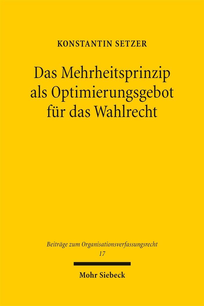 In der Rechtswissenschaft erfährt das Mehrheitsprinzip hinsichtlich des Wahlrechts wenig Beachtung. Konstantin Setzer weist unter Einbeziehung des rechtshistorischen und demokratietheoretischen Hintergrundes wie auch der Konkretisierungen zum Wahlrecht im Grundgesetz nach, dass die Abstimmungsmehrheit als verfassungsrechtlicher Grundsatz auch für Wahlen fungiert. Er erläutert den notwendigen Integrationsprozess von der politischen Pluralität zum mehrheitlichen Kompromiss zunächst anhand der Bundestagswahl und nimmt dabei auch zu den jüngsten Wahlreformen Stellung. Anschließend arbeitet er die wesentlichen Unterschiede zur Wahl eines monokratischen Amtes heraus, die einen mehrstufigen Prozess der Mehrheitsbildung unter Einbeziehung nachrangiger Wählerpräferenzen erfordert. Abschließend beurteilt er die Verfassungsmäßigkeit verschiedener Varianten von Bürgermeister- und Landratswahlen.