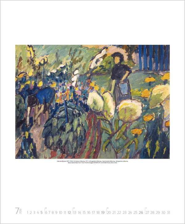 Der Name Gabriele Münter (1877-1962) ist zwar unzertrennlich mit der expressionistischen Künstlergruppe 'Der Blaue Reiter' verbunden, ihr Gesamtwerk ist aber weit vielfältiger und facettenreicher. Porträts, Stillleben, Landschaften, Interieurszenen und Abstraktes von strahlender Leuchtkraft - die Künstlerin ist experimentierfreudig, reiselustig und zeitlebens auf der Suche nach neuen Ausdrucksformen. Dieser Kalender zeigt eine hochwertige Auswahl aus Münters Werken.