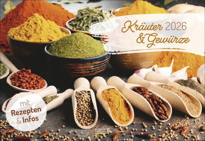 Der praktische Kalender zeigt 12 Stillleben mit Infotexten und Rezepten zu den beliebtesten Kräutern und Gewürzen. Mit viel Platz für Notizen und einer Übersicht mit Ferienterminen.
