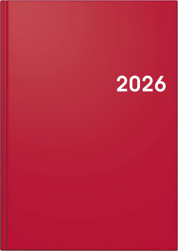 Blattgrö ß e: 145 × 206 mm ? 1 Seite = 1 Tag, Sa. und So. auf einer Seite ? 352 Seiten, Druckfarbe Kalendarium: schwarz/rot ? 70 g/m² , Klebebindung ? sechssprachig: deutsch, englisch, franzö sisch, italienisch, spanisch, niederlä ndisch ? Kunststoff-Einband Balacron, Farbe: rot ? Jahresü bersicht Folgejahr, 4 Seiten Monatsplan aktuelles Jahr, 6 Seiten Monatsplan Folgejahr, Ferientermine Deutschland und Ö sterreich, 1 Seite Notizen blanko, 10 Seiten Wissenswertes, 13 Seiten Adressen ? halbstü ndliche Einteilung von 7-23 Uhr, Sa. und So. stü ndliche Einteilung von 7-20 Uhr ? Eckperforation, Zeichenband ? fü r Kalenderjahr 2026
