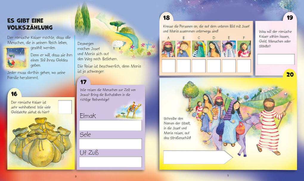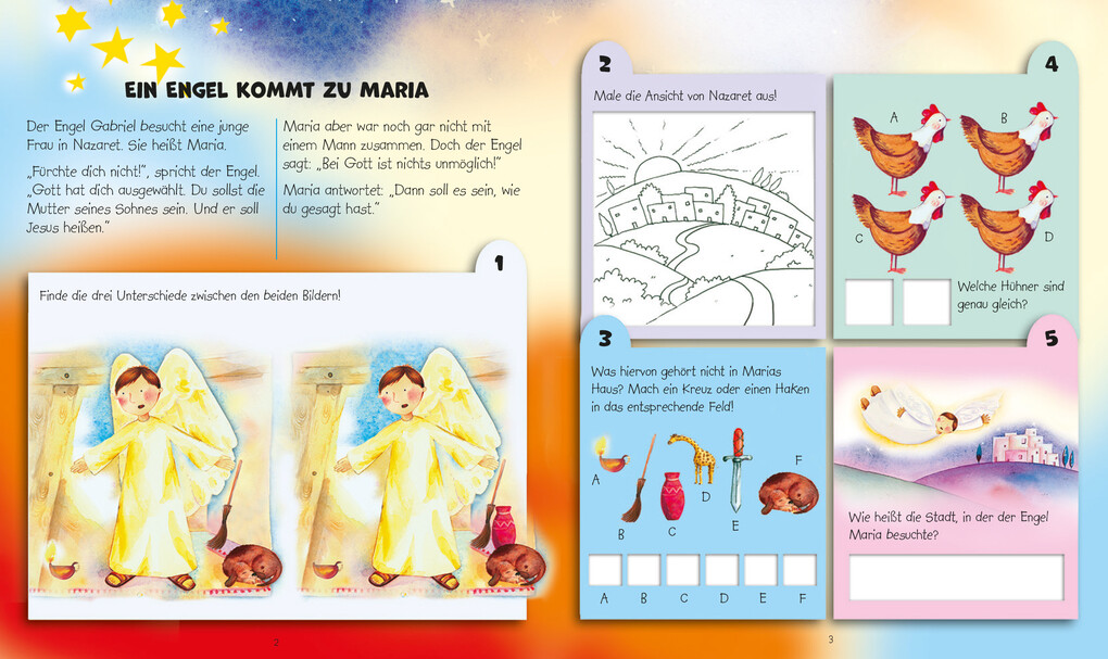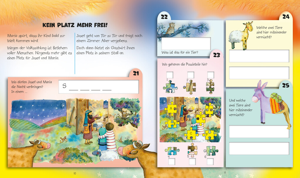 "101 x kreativ sein mit der Weihnachtsgeschichte" bietet große Spiel- und Entdeckerfreude für Kinder. Ob Wortsuche, Zählaufgabe, Rätsel oder das Finden und Verbinden von Gegenständen und Begriffen - für alle Spürnasen ist etwas dabei.
