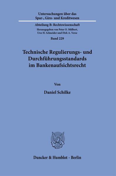 Die European Banking Authority entwirft technische Regulierungs- und Durchführungsstandards. Sie ergehen regelmäßig als Verordnungen und sind delegierte Rechtsakte oder Durchführungsrechtsakte gemäß Art. 290 f. AEUV. Daniel Schilke prüft die technischen Standards am Demokratieprinzip und dem Prinzip des institutionellen Gleichgewichts. Technischen Standards kommt eine Rangqualität sui generis zu, was eine besondere Behandlung impliziert: Diese spezifische Einordnung wird unter anderem bei der Abgrenzung der technischen Standards erkennbar. Die Methoden zur Auslegung des Sekundärrechts sind anzupassen. Das Mandat der Europäischen Zentralbank im Single Supervisory Mechanism ist restriktiv auszulegen; die Dichotomie zwischen Aufsicht und Regulierung ist zu stärken. Effektiver Rechtsschutz gegen technische Standards ist weiter auszubauen. Im Vergleich mit dem deutschen, belgischen, spanischen und US-amerikanischen Recht tritt die spezifische Einordnung ebenfalls deutlich hervor.