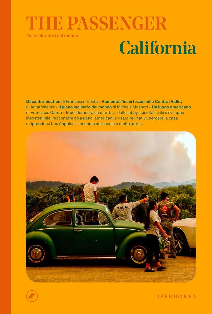 The Passenger vola per la prima volta negli Stati Uniti per occuparsi di uno stato eccezionale, sotto assedio. I principali media americani, perlopiù espressione di New York e Washington, ci hanno preso gusto a celebrarne il funerale e si sente spesso parlare di «fine della California per come la conosciamo», ma per certi versi è ancora giusto ritenerlo uno stato modello: progressista, libertario e all'avanguardia come ci racconta uno che lo conosce bene, Michele Masneri, in uno dei contributi di questo numero. Viverci, però, è diventato un privilegio e molti, ulteriormente incentivati dalla prospettiva del lavoro a distanza, nonostante un'economia in boom, bussano alle porte degli stati confinanti: è il paradosso spiegato da Francesco Costa nel suo Decalifornication che apre il volume. Per chi non è bianco, invece, non c'è nulla di nuovo, la vita è sempre stata in salita, perfino per le comunità apparentemente più integrate, come quella asiatica, colpita dallo strano pregiudizio di essere una «minoranza modello», uno stereotipo pericoloso come tutti ma che oggi una nuova generazione di romanzieri asiatici americani cerca di ribaltare, Vanessa Hua ci spiega come. Lisa Teasley, scrittrice poeta e artista visiva, mostra come anche in quel che è rimasto dei quartieri multietnici di Los Angeles - città teatro di storiche rivolte nere, dove la quota degli afroamericani si sta abbassando sempre di più - il riscatto e la speranza arrivano dal mondo della cultura. La California in generale ha bisogno di un nuovo storytelling che prenda coscienza del peccato originale - la colonizzazione con il sangue della popolazione indigena - ed è confortante apprendere dall'articolo di Lauren Markham, esperta di flussi migratori e tematiche ambientali, che oggi esista un movimento di restituzione di terreni agli eredi dei legittimi proprietari. Tra le terre conquistate con la violenza nell'Ottocento c'è anche un parco nazionale che ogni americano associa a un ideale di natura incontaminata, a un'oasi di boschi, laghi e cime innevate nella terra del surf: Yosemite, una delle tante Californie che visiteremo in questo numero, in questo caso con lo scrittore Francisco Cantú. Sotto altri aspetti invece non si può più parlare di paradiso naturale e terra promessa, quanto di terra problematica e pesantemente minacciata da cambiamenti climatici. Un'altra scrittrice che ha pubblicato un libro di successo sulla California, Anna Wiener, ci porta nella Central Valley, dove cresce buona parte del cibo per le cucine degli americani e dove un modello di colture ad alto consumo idrico in un territorio afflitto dalla siccità sta entrando in crisi. Concludiamo con la foto di apertura, quella di copertina, con un gruppetto di persone che indicano sullo sfondo la nuvola di fumo di uno dei tanti giganteschi incendi che divampano ogni anno nello stato; il reporter Mark Arax spiega come a fianco ai fattori climatici, ci siano anche pesanti responsabilità politiche.