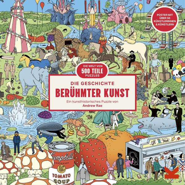 > Perfektes Geschenk für begeisterte Puzzle-Fans und Kunstliebhaber*innen > 500-Teile-Puzzle mit einer Pop-Art-Szene in fantastischen Details, die von den niederländischen alten Meistern bis zu Yayoi > Kusamas Punkten reicht > Voller berühmter Kunstreferenzen, die auf dem beiliegenden Poster erklärt werden Setzen Sie ein Pop-Art-Universum in diesem 500-Teile-Puzzle zusammen, das die verrückte Welt der Kunst von Botticellis Geburt der Venus bis hin zu Damien Hirsts diamantbesetztem Schädel darstellt. Entdecken Sie eine bunte Sammlung von Lieblingen der Kunstwelt (darunter Andy Warhol, Salvador Dalí, Frida Kahlo und Yayoi Kusama) und genießen Sie eine fantastische Vielzahl künstlerischer Details, während Sie das Puzzle zusammensetzen. Willkommen auf Ihrer Reise durch die Geschichte ikonischer Künstler*innen!
