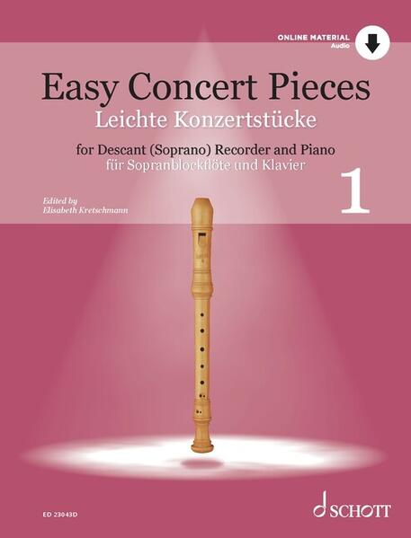 Die Reihe Easy Concert Pieces hat die richtigen Stücke für die ersten Konzerte parat. Leichte bis mittelschwere Originalkompositionen und Bearbeitungen für Sopranblockflöte und Klavier liefern einen Querschnitt durch die verschiedenen Epochen, von der Renaissance bis in die Moderne. Zum Download verfügbar sind alle Stücke als Vollversion und als Klavierbegleitung zum Mitspielen. Band 1 enthält überschaubare kurze Stücke im Tonraum von c' bis e'' einschließlich der Halbtöne fisŽ und bŽ. Die Rhythmik ist einfach gehalten. Einige Stücke haben nur einen geringen Ambitus, so dass dieser Band schon nach kurzer Zeit des Blockflötenunterrichts als Begleitheft Verwendung finden kann. Schwierigkeitsgrad: 1-2