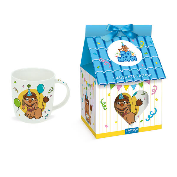Moppi wird 50 Jahre alt - das muss gefeiert werden! Am besten mit dieser einzigartigen Jubiläumstasse in einer hochwertigen Geschenkverpackung. Die liebevoll gestaltete Porzellantasse ist umlaufend bedruckt und hat ein Fassungsvermögen von 300 ml. Ein Muss für alle großen und kleinen Moppi-Fans!
