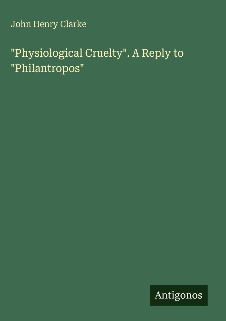 Es wurden noch keine Bewertungen abgegeben. Schreiben Sie die erste Bewertung zu ""Physiological Cruelty". A Reply to "Philantropos"" und helfen Sie damit anderen bei der Kaufentscheidung.