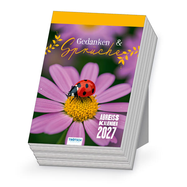 Tag für Tag aufs Neue Inspiration und gute Gedanken bringt unser ABREISSKALENDER ZUM AUFSTELLEN. Jeden Tag des Jahres erfreut er mit liebevollen oder tiefsinnigen Sprüchen, welche die Seele beruhigen oder die Gedanken auf neue Wege bringen. Die Alltagsroutine wird mit einem kurzen Blick auf den Kalender aufgelockert und lässt sich gleich viel leichter nehmen. Die beruhigend florale Hintergrundgestaltung unterstützt den beruhigenden Effekt und macht den Abreißkalender zugleich zu einem dekorativen Blickfang in den eigenen vier Wänden oder im Büro. Er lädt die Gedanken zum Verweilen ein und zaubert ein wohliges Lächeln ins Gesicht.