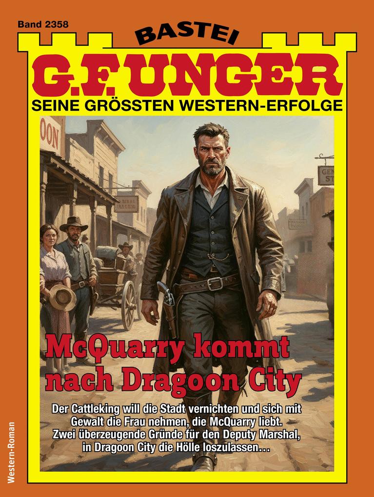 Der Canyon durchbricht die Kette der Dragoons von Süd nach Nord. Und im breiten Maul des Canyons, das vor ihm liegt, sieht Jack McQuarry die Häuser der Stadt. Er ist ein großer Mann mit einem ruhig wirkenden Gesicht, in dem eine tief in seinem Kern liegende Härte zu erkennen ist. Er und sein Pferd sind mit Staub bedeckt. McQuarry ist den Mulkey-Brüdern auf den Fersen, die in Hills Boro die Bank ausraubten. Ihre Fährte hatte sich geteilt, und so warb er drei Männer an, die den Spuren folgten. Er selbst konnte ja nicht zur selben Zeit drei verschiedene Wege beschreiten. Er war sich jedoch sicher, dass sich die Fährten irgendwo wieder vereinigen würden. Und so wartete er und ließ die Spürhunde für sich suchen. Doch dann erhielt er von dem kleinen Mr. Fox die Nachricht, dass sich die Mulkey-Brüder schon seit Tagen im Freudenhaus von Dragoon City aufhielten. Und nun ist er da . . .