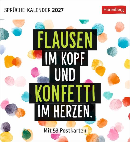 - Heute schon aus der Reihe getanzt? Der Postkartenkalender 2027 für alle, die voller Motivation in den Tag starten wollen- "Wer den Tag mit einem Lachen beginnt, hat ihn bereits gewonnen": Kalender zum Aufstellen oder Aufhängen mit positiven Gedanken und optimistischen Sprüchen- Gute-Laune-Alarm für den Briefkasten: Inspirations-Karten in dekorativen Pastellfarben, auch zum Verschicken an gute Freunde, die ein Lächeln gebrauchen können- Think positive! Kluge Weisheiten für alle Lebenslagen: Passt auf jeden Schreibtisch oder Nachtschrank (Format 16 x 17, 5 cm)- Wenn Worte glücklich machen: Die Postkartenkalender von Harenberg im Athesia Kalenderverlag