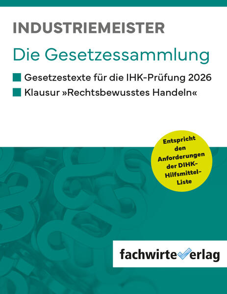Aufgabe dieser Sammlung ist die bestmögliche Unterstützung für die IHK-Prüfung! Es sind für die Klausur Rechtsbewusstes Handeln ausdrücklich vor allem aber nicht nur folgende Gesetze erlaubt: Handelsgesetzbuch; Bürgerliches Gesetzbuch; Arbeitsgesetze; Produkthaftungsgesetz; Umweltschutzgesetze bzw. Gesetzessammlungen, in denen diese Gesetze Bestandteil sind. Weiterhin regelt die DIHK-Hilfsmittelliste: Es dürfen nur unkommentierte Fassungen verwendet werden; Klebezettel, Lesezeichen, Unterstreichungen und Anmerkungen, soweit es sich ausschließlich um Querverweise auf andere Paragrafen handelt, sind zulässig. Die vorliegende Gesetzessammlung erfüllt diese Anforderungen. Wer die genannten Gesetze als Einzelausgaben mit in die Prüfung nimmt, schleppt einige Kilo und sucht dann in verschiedenen Registern die notwendige Information auf Tausenden von Seiten, von denen mindestens 80% nie und nimmer in dieser Klausur gebraucht werden. Das kostet nicht nur Geld und Kraft, sondern vor allem in der Prüfung auch unnötig Zeit und Nerven! Diese Gesetzessammlung orientiert sich allein an dem Bedarf in der Prüfung. Sie enthält deshalb von den genannten Gesetzen und einigen anderen genau die Teile bzw. §§, die auch in der Prüfung gebraucht werden könnten.