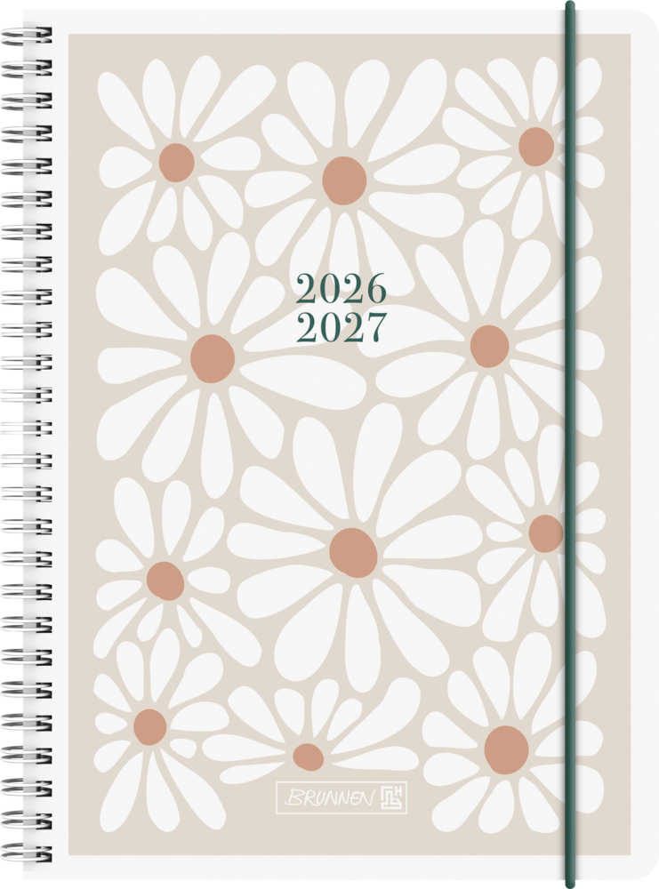Blattgröße: 148×210 mm; 208 Seiten, Druckfarbe Kalendarium: grün; Wire-O-Bindung; PP-Einband, Softcover, flexibel, abgerundete Ecken, Farbe: beige, Gummizugverschluss; Eckperforation; Monatsplan April 2026 bis Dezember 2027, Ferientermine Deutschland, Österreich, Schweiz, Frankreich, Belgien, Luxemburg, Niederlande und Südtirol, 9 Seiten Notizen, 2 Seiten Stundenpläne und 2 Seiten Notenübersicht, 6 Seiten Adressen; mit Lineal und Sammeltasche. . .