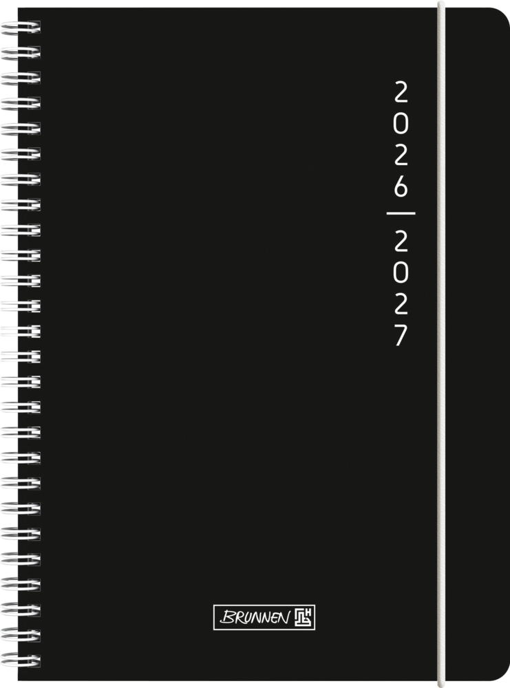 Blattgröße: 148×210 mm; 208 Seiten, Druckfarbe Kalendarium: grau; Wire-O-Bindung; PP-Einband, Softcover, flexibel, abgerundete Ecken, Farbe: schwarz, Gummizugverschluss; Eckperforation; Monatsplan April 2026 bis Dezember 2027, Ferientermine Deutschland, Österreich, Schweiz, Frankreich, Belgien, Luxemburg, Niederlande und Südtirol, 9 Seiten Notizen, 2 Seiten Stundenpläne und 2 Seiten Notenübersicht, 6 Seiten Adressen; mit Lineal und Sammeltasc. . .