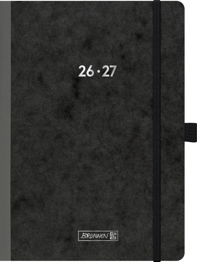 Blattgröße: 148×210 mm; 208 Seiten, Druckfarbe Kalendarium: grau; Klebebindung; Karton-Umschlag, Softcover, flexibel, abgerundete Ecken, Farbe: schwarz, partielle Folienveredelung, Gummizugverschluss; Eckperforation; Monatsplan April 2026 bis Dezember 2027, Ferientermine Deutschland, Österreich, Schweiz, Frankreich, Belgien, Luxemburg, Niederlande und Südtirol, 9 Seiten Notizen, 2 Seiten Stundenpläne und 2 Seiten Notenübersicht, 6 Seiten Adre. . .
