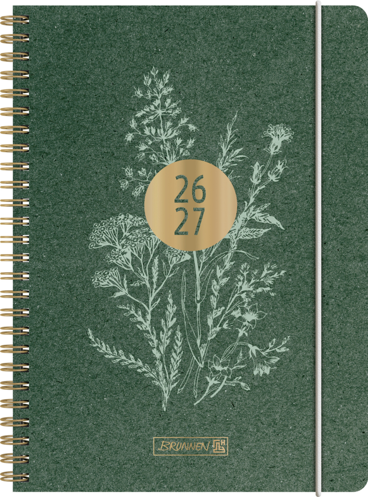 Blattgröße: 148×210 mm; 208 Seiten, Druckfarbe Kalendarium: grau; Wire-O-Bindung; Naturkarton-Umschlag, Softcover, flexibel, abgerundete Ecken, Farbe: grün, partielle Folienveredelung, Gummizugverschluss; Eckperforation; Monatsplan April 2026 bis Dezember 2027, Ferientermine Deutschland, Österreich, Schweiz, Frankreich, Belgien, Luxemburg, Niederlande und Südtirol, 9 Seiten Notizen, 2 Seiten Stundenpläne und 2 Seiten Notenübersicht, 6 Seiten . . .