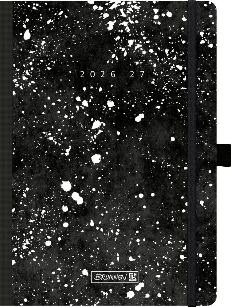 Blattgröße: 148×210 mm; 208 Seiten, Druckfarbe Kalendarium: grau; Klebebindung; Karton-Umschlag, Softcover, flexibel, abgerundete Ecken, Farbe: weiß, schwarz, Gummizugverschluss; Eckperforation; Monatsplan April 2026 bis Dezember 2027, Ferientermine Deutschland, Österreich, Schweiz, Frankreich, Belgien, Luxemburg, Niederlande und Südtirol, 9 Seiten Notizen, 2 Seiten Stundenpläne und 2 Seiten Notenübersicht, 6 Seiten Adressen; mit Stifthalter . . .