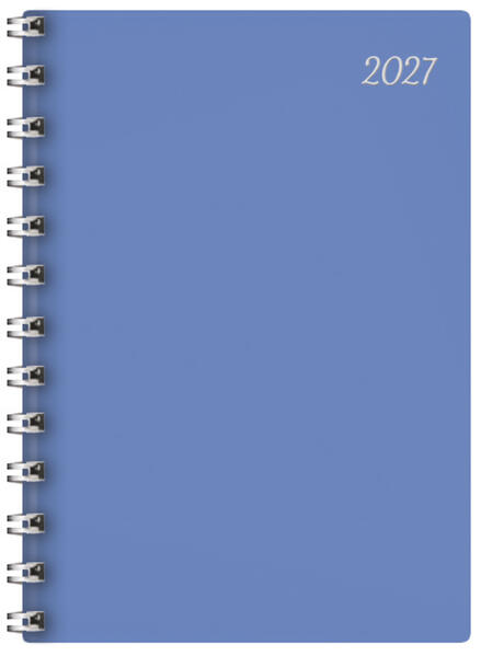 Praktischer Buchkalender in modernem Blau mit Ringbindung. 320 Seiten. Pro Wochentag eine Seite. Sa/So eine Seite. Kalendarium: d-e-f-i.