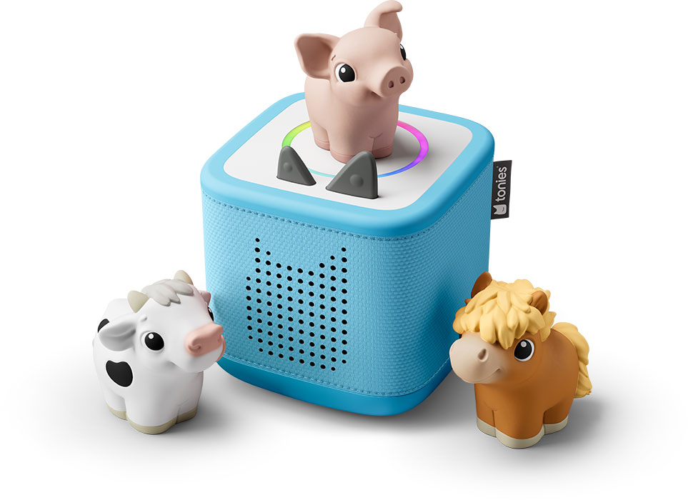 Drücken, lauschen und lernen mit My First Tonies! Entdecke die Welt der Bauernhoftiere! Welches Geräusch macht die Kuh? Und wie macht das Schwein? Und wie macht das Pferd? Lerne deine ersten Bauernhof-Tiere spielerisch kennen. In kurzen, altersgerecht erzählten Geschichten erfahren die Allerkleinsten alles über ihre ersten Bauernhof-Tiere, üben ihr Hörverstehen und ihre Sprachfähigkeiten und lernen ganz nebenbei neue Wörter. Ein Klangteppich mit echten Tiergeräuschen und Musik begleitet die kleinen Bauernhof-Fans beim offenen Spiel. Auf jedem Tonie lädt ein original tonies® Tierlied mit eingängigen Melodien zum Mitsingen und Mitmachen ein. Gelesen und gesungen von Kindern und Erwachsenen. Mit echten Tier-Geräuschen! Das Set beinhaltet die drei My First Tonies: Kuh, Schwein und Pferd. KuhMuh! macht die Kuh. Besuche Mama Kuh und ihr Kälbchen auf der Weide und erfahre, welche Laute sie machen, wenn sie sich unterhalten, so richtig hungrig sind und Gras fressen oder gemächlich auf der Wiese herumspazieren. Mit einem original tonies Kuh-Lied mit eingängigen Melodien zum Mitsingen und Mitmachen. SchweinQuiek! macht das Schwein. Mama Schwein ist auf der Suche nach ihren Ferkeln. Komm, wir helfen ihr und grunzen einmal ganz laut. Da sind sie ja! Und trippeltrapp folgen wir Mama Schwein und den Ferkeln in den Stall. Mit einem original tonies Schweinchen-Lied mit eingängigen Melodien zum Mitsingen und Mitmachen. PferdHüüaah! macht das Pferd. Hörst du das Pferd? Es wiehert. So sagt es dir Hallo! . Komm, wir gehen zu Mama Pferd und zu ihrem Fohlen auf die Weide. Sie futtern rote Äpfelchen, die vom Baum gefallen sind. Und jetzt spielen sie Fangen und toben herum. Irgendwann ist das Fohlen müde und sie suchen sich ein Plätzchen zum Ausruhen. Mit einem original tonies Pferde-Lied mit eingängigen Melodien zum Mitsingen und Mitmachen. Die Toniebox 2 ist der Audioplayer, der für Kinderhände designt wurde und Kinder jeden Tag in ihrer Entwicklung unterstützt. Geliebt von Kindern (und ihren Familien!) im Alter von 1 bis 9+ Jahren, stärkt die Toniebox 2 ihre Selbstständigkeit und ihr Selbstvertrauen, während sie lernen, spielen und wachsen. Die neue Toniebox 2 ist robust und wurde gebaut, um den wildesten Abenteuern, Stürzen und Stößen standzuhalten! Sie bietet den kleinen Entdecker*innen noch mehr Hör-Spiel-Spaß: Sie können in ihre Lieblingsgeschichten und -lieder mit ihren Tonie-Figuren eintauchen. Oder sie spielen mit Tonieplay, um bildschirmfreie, interaktive Spiele, Quizze und Herausforderungen zu erleben, bei denen sie das Steuer in der Hand haben. Es gibt so viele Tonies und Tonieplay Games zur Auswahl, dass dein Kind für jeden Anlass etwas Passendes findet. Außerdem helfen der neue Gute-Nacht-Modus, das Nachtlicht mit Timer und der Sonnenaufgangswecker Familien dabei, gesunde Schlafrituale zu etablieren und die Schlafenszeit zu optimieren alles gesteuert über die tonies® App. Und da es keine Bildschirme und keine Werbung gibt, können Eltern beruhigt sein, dass ihre Kinder sicher und selbstständig spielen können . . . auf eine völlig neue Art und Weise.