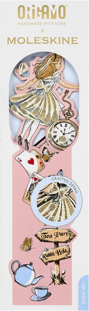 Lassen Sie sich von Ihrer Neugier leiten. Inspiriert von den Abenteuern von Alice im Wunderland lädt Moleskine dazu ein, jeden Tag in ein Abenteuer zu verwandeln. Wo Momente der Überraschung sich in Reisen der Selbstfindung verwandeln und Verwirrung der Klarheit weicht. Denn wenn oben unten ist und alles das ist, was es nicht ist, erwacht das Genie. Sind Sie verloren oder gefunden? Dieses Lesezeichen aus recyceltem Fedrigoni-Papier und mit handgehefteten Seiten aus Moleskine Notizbüchern hilft Ihnen, dort weiterzumachen, wo Sie aufgehört haben, auch wenn Sie nicht genau wissen, wohin Sie gehen sollen. '- Alice im Wunderland Lesezeichen von Origamo - hergestellt aus 100% recyceltem Fedrigoni-Papier und handgehefteten Seiten aus unbenutzten Moleskine Notizbüchern