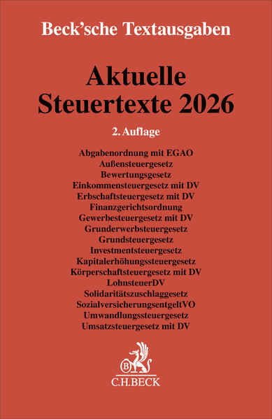 Abgabenordnung mit EGAO, Außensteuergesetz, Bewertungsgesetz, Einkommensteuergesetz mit DV, Erbschaftsteuergesetz mit DV, Finanzgerichtsordnung, Gewerbesteuergesetz mit DV, Grunderwerbsteuergesetz, Grundsteuergesetz, Investmentsteuergesetz,Kapitalerhöhungssteuergesetz, Körperschaftsteuergesetz mit D