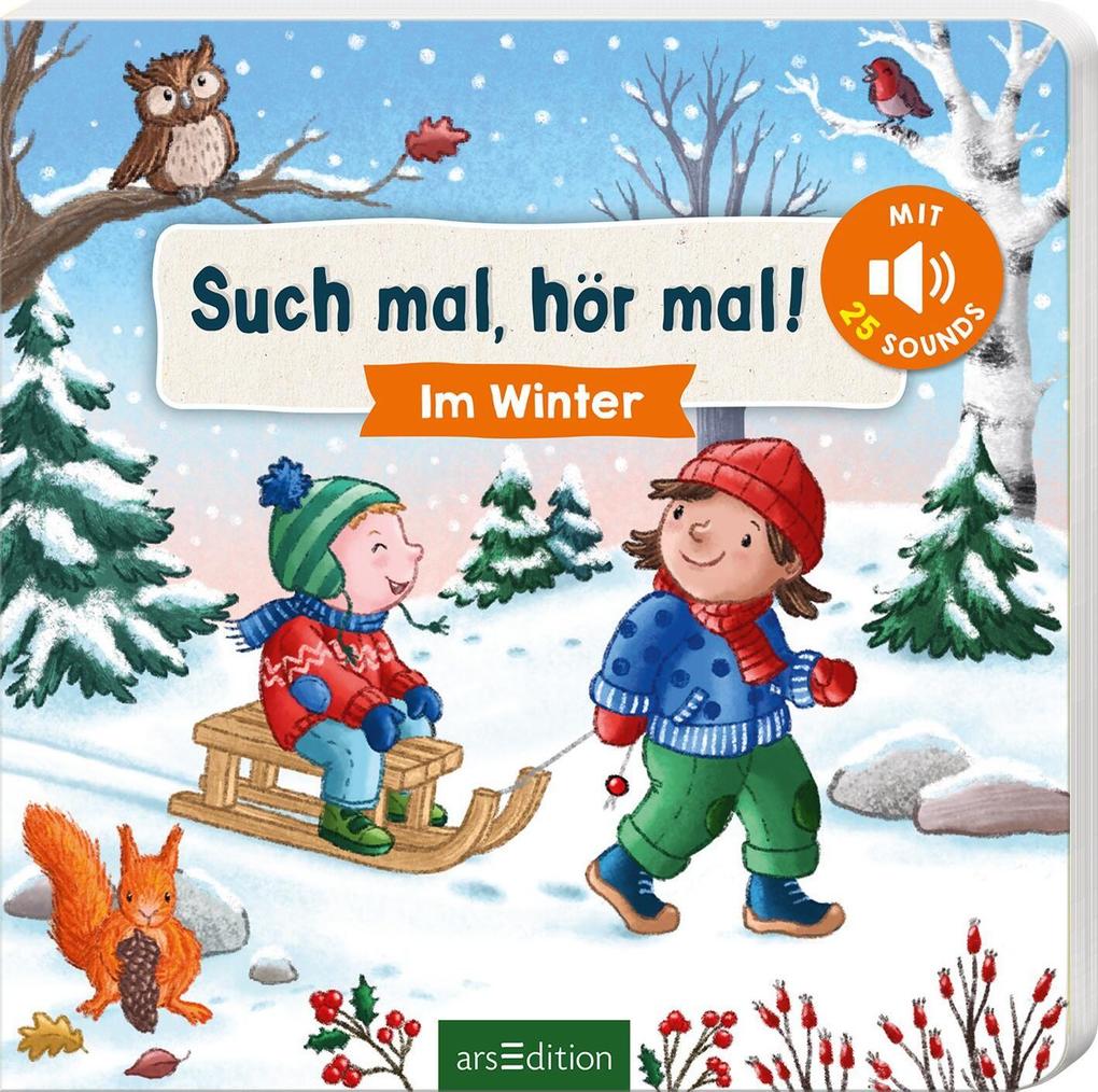 Wie macht der Fuchs im Winterwald? Wie klingt die Pferdekutsche auf dem Weihnachtsmarkt? Und hörst du, wie der Schneeball gegen das Fenster kracht? Das liebevoll gestaltete Bilderbuch verbindet Wimmelspaß, Geräusche und erstes Suchen und Finden.