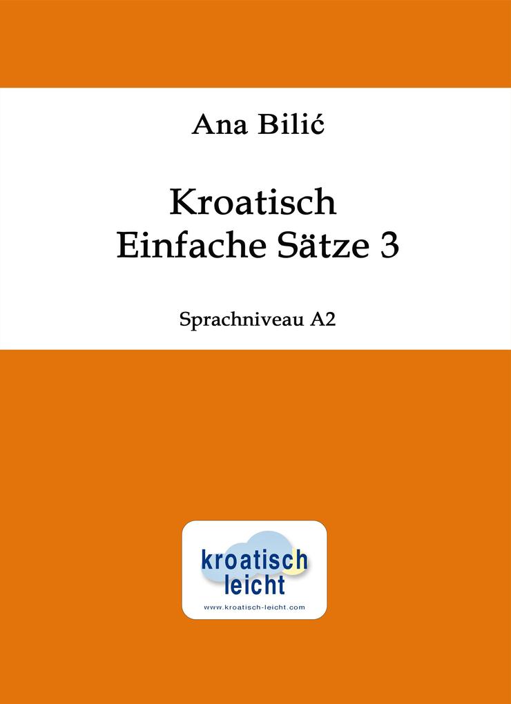 "Kroatisch: Einfache Sätze 3" - Sprachniveau A2 bietet vorgefertigte Sätze zum Erlernen der kroatischen Sprache mit ihren deutschen Übersetzungen. Die Sätze sind thematisch in der gleichen Reihenfolge wie die Lektionen sechs und sieben des Lehrbuchs "Ja govorim hrvatski 2" angeordnet und an die Themen und Grammatik des Sprachniveaus A2 gemäß dem Gemeinsamen Europäischen Referenzrahmen für Sprachen (GER) angepasst. Die Themen sind in 27 Listen unterteilt: Plaudern, Stadt und Land, Tiere, Gesundheit und Der Alltag meiner Familie. Dieses Buch kann auch unabhängig vom Lehrbuch verwendet werden.